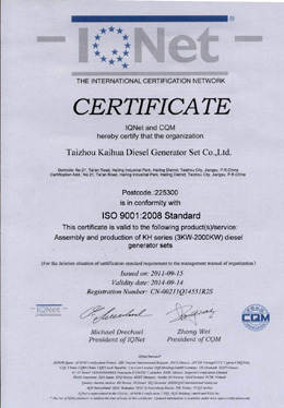 凱華靜音發(fā)電機(jī)產(chǎn)品符合GB/T2820-1997或GB12786-91國(guó)家標(biāo)準(zhǔn),并已批量投放市場(chǎng)。超靜音
